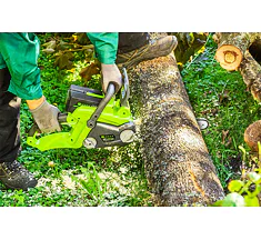 AKU chainsaw with fixed guide bar (12") and Oregon saw chain. Two-handed operation. Chain speed 10 m/s. Number of drive elements 45 pcs.