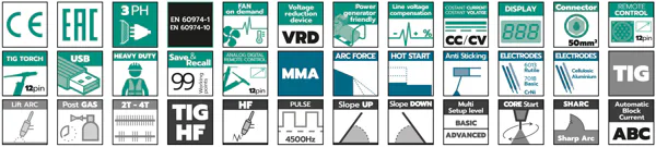 Welding inverters designed to work with unstable supply voltages caused by the use of power generators and long connection lines, designed to meet the requirements of even the most demanding user with a wide current range and a high duty cycle. Excellent welding features guaranteed with all types of commercial electrodes due to the possibility to setup Arc Force and Hot Start values. Equipped with special features controlling excess input voltage, overheating and electrode sticking, functions which protect against instable generators even in the harshest working conditions. The TIG/MMA switch also enables use for TIG Lift Arc or HF welding accordingly to the chosen model. Equipped with digital display to show welding current, welding voltage and other parameters. The generator is fitted with a VRD, which allows to work even in hazard environments. The VRD function can be switched on or off as required. All models may be used with remote control. TIG HF models allow to set all welding parameters.