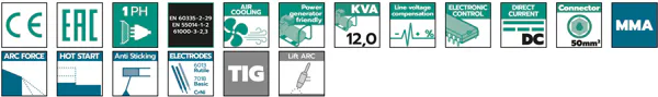 Easy-to-use welding inverters: optimum welding performance with all types of commercial electrodes (rutile, basic, stainless steel). They fit overvoltage, over temperature and anti-sticking control. They are equipped with STICK/TIG (lift arc) selector. They can be connected to power sources and long connection lines. They are ideal for maintenance jobs and workshops applications.